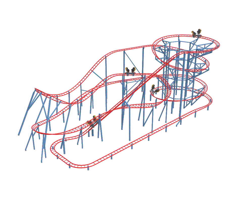 超炫過山車結(jié)合720°螺旋下降、水平螺旋環(huán)的運(yùn)動(dòng)方式,配合自轉(zhuǎn)回旋車體,同時(shí)創(chuàng)新地將過山車有傾?的路軌引到自旋滑車的軌道中,打造出兼具失重、超重和回旋的多重乘坐體驗(yàn)。四人座車體中,游客兩兩對(duì)坐,互動(dòng)交流有趣。該設(shè)備適合親?、情侶群體游客游玩。
