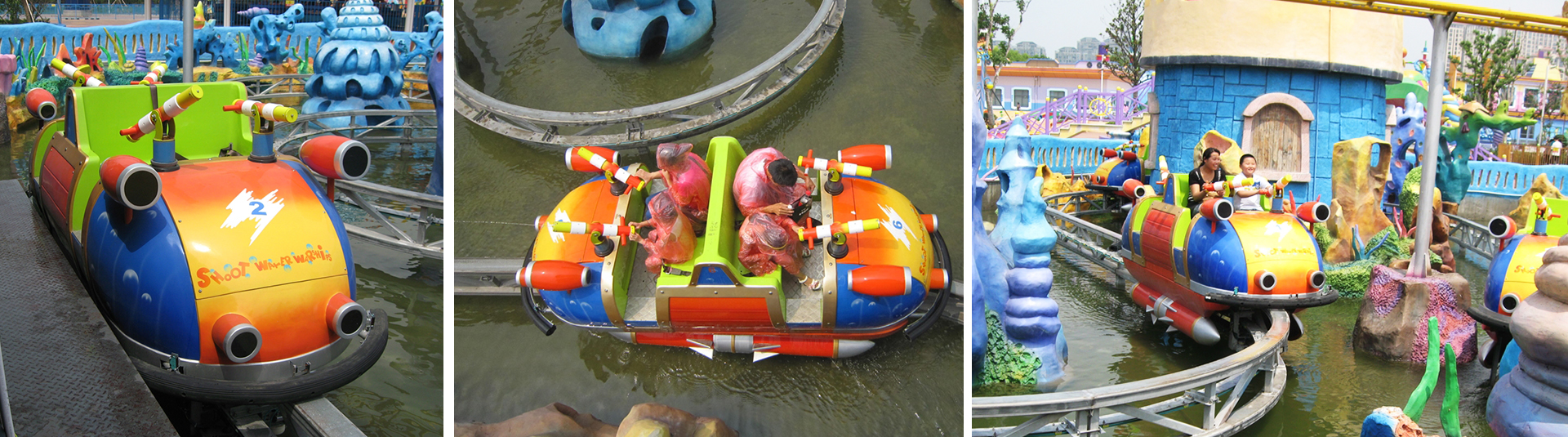 射?戰(zhàn)船是?套互動(dòng)性較強(qiáng)的?上游樂(lè)設(shè)備。乘客在乘坐戰(zhàn)船過(guò)程中可使?射?槍向其它戰(zhàn)船上的乘客進(jìn)?射?,互相嬉戲。可定制個(gè)性化主題造景,增強(qiáng)互動(dòng)效果。