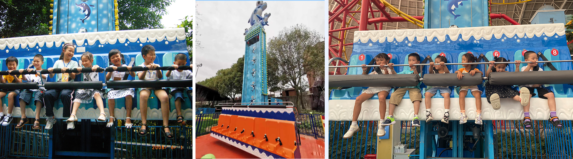 海豚跳以海豚在海洋中跳躍為主題,以海洋浪花作為外形的座艙沿著?柱軌道作上升、下降和連貫的跳躍運(yùn)動(dòng),讓游客體會(huì)歡快跳躍的感覺(jué)。