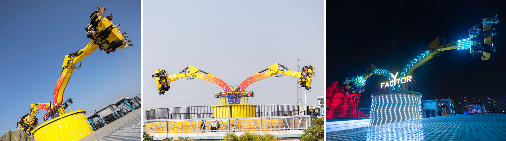 繞垂直軸旋轉(zhuǎn)、座艙繞支臂軸旋轉(zhuǎn)的陀螺類游樂設(shè)施;大臂向上拉升,到達(dá)上限位置后,座艙旋轉(zhuǎn);傾斜運(yùn)行、俯瞰大地,體驗(yàn)翻倍;