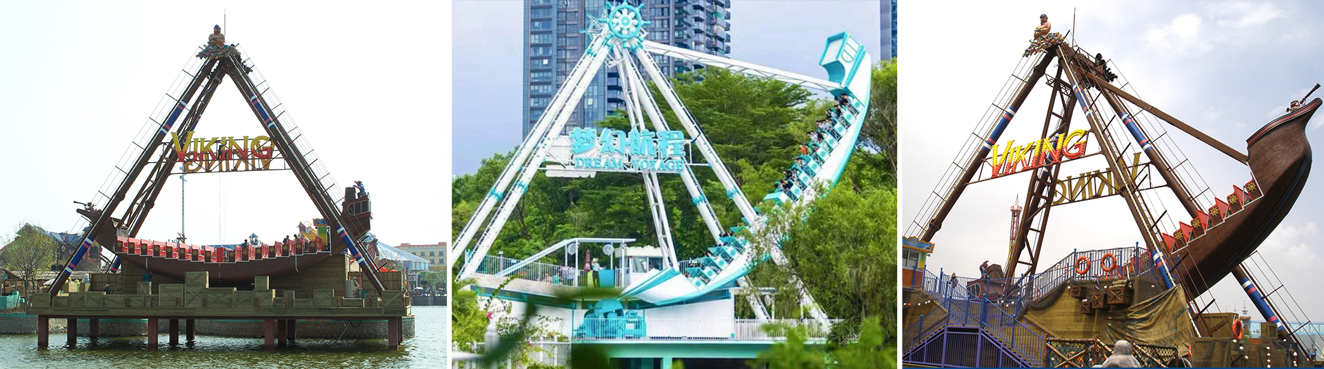 海盜船繞水平軸來(lái)回?cái)[動(dòng),模擬海盜乘風(fēng)出海的場(chǎng)景,交替而至的失重和超重感讓乘客盡情體驗(yàn)搖擺的樂(lè)趣。16排座椅,承載96人。