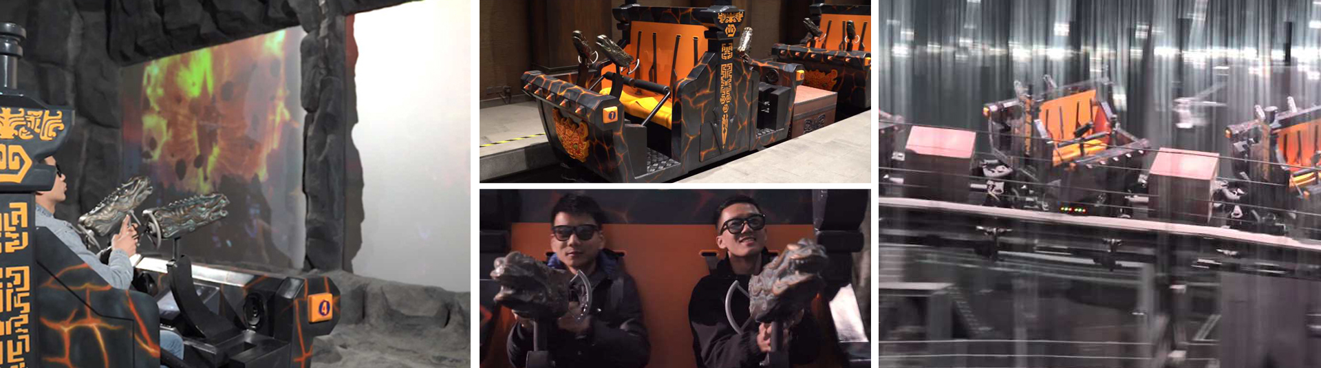 互動軌道?是?款室內(nèi)休閑游樂設(shè)備,將3D交互游戲和過??兩種元素有機結(jié)合,乘客在游玩過程中既能體驗3D?體的主題視覺效果,?能體驗過??刺激,還互動參與激烈的射擊競賽,是?款新穎的架空游覽?項?。